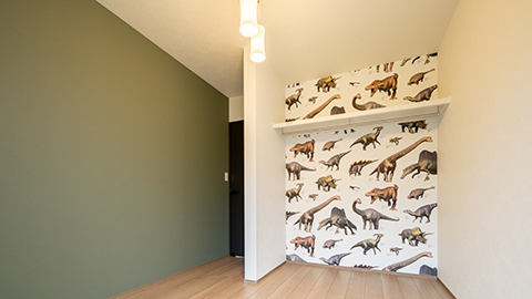子ども部屋には可愛らしい恐竜の壁紙をチョイス