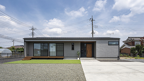 グレーの塗り壁、重心を低くした外観はイメージ通りの仕上がりに