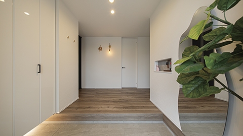 大きな収納を設えたスッキリとした玄関