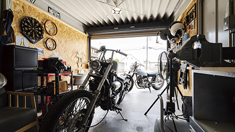 庭に備えたバイクガレージ