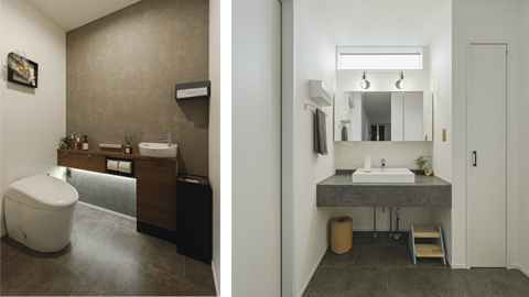左:清潔感溢れるトイレ 右:洗面